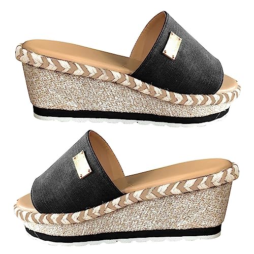 Générique Chaussures Femme Compensées Sandale Plateforme Chaussures En Corde pour Femmes,Nouvelles À Talon Incliné,Semelle Épaisse,Sandales Grande Taille Sandale Cuir Femme Sandales (Black,43)