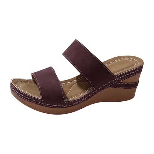 Uwdiohq Sandales Confortables À Semelle Compensée Pour Femme, Couleur Unie, Respirantes, Orthopédiques, En Cuir, L'Été, Idéales La Marche Toute Appartements Noirs (Brown, 42) Sandale