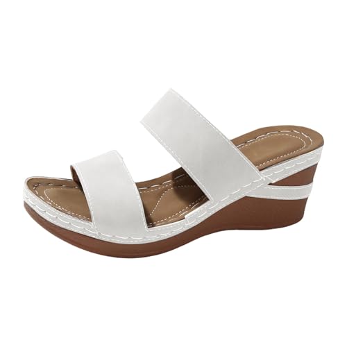 Uwdiohq Sandales Confortables À Semelle Compensée Pour Femme, Couleur Unie, Respirantes, Orthopédiques, En Cuir, L'Été, Idéales La Marche Toute Appartements Noirs (White, 42) Chaussures Ete