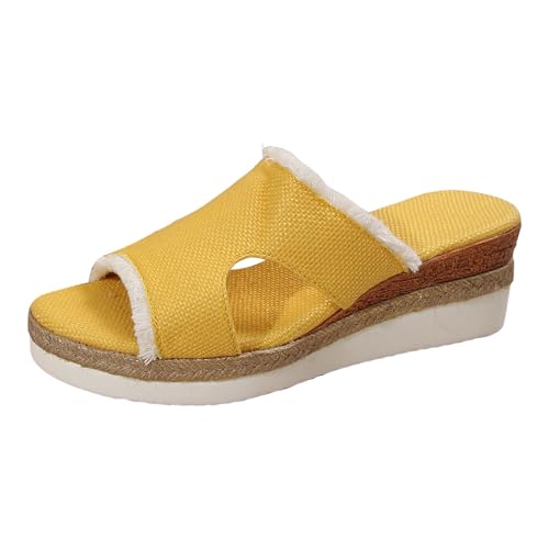 Mules pour femme - Sandales à talon compensé pour femme - Couleur unie - Bouche creuse - Épais - Sandales de plage décontractées - Extérieures - Texte source - Sandales pour femme avec talon, jaune