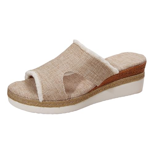Générique Source de chaussures pour femmes, sandales hauts épais, semelle souple, bout ouvert, bouche de poisson Été Chaussure Confort plus (m-Beige, 42)