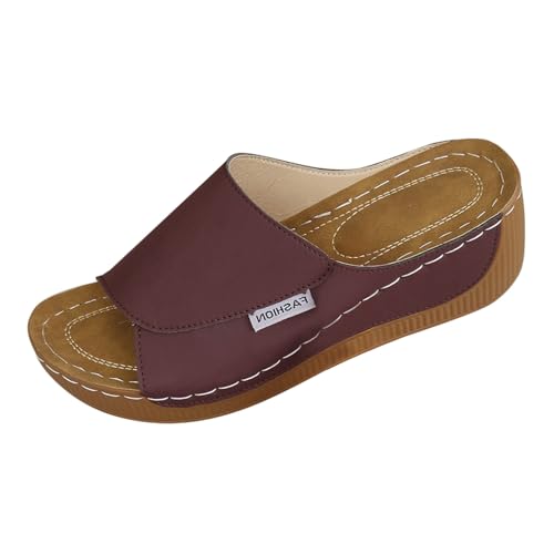 Sandales Femme,Tropeziennes Sandales Femme,à Talons compensés pour, Style décontracté, Style Plage. Mocassins Noir (Wine, 43)