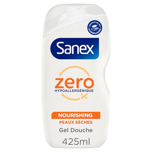 SANEX - Gel Douche Zero% Nourissant - Peaux sèches - Hypoallergénique - Pour toute la famille - Corps, visage & cheveux - 425ml