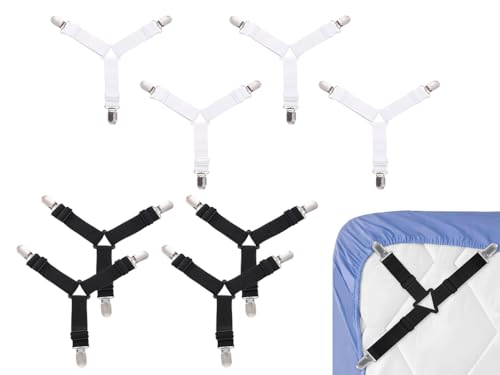 Abiyou 8 Pièces Tendeur Drap Housse, Triangle Attache Matelas, Attache Drap Housse Réglable, Sangles pour Draps de Lit, Élastiques Ajustables Sangle Drap Housse, pour Draps de Lit, Coussins de Canapé