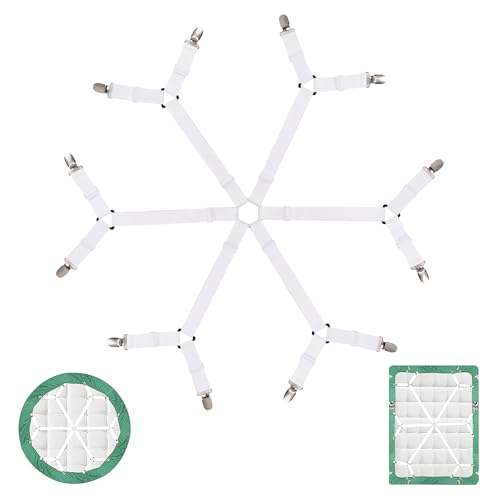 Kuugeo Tendeur Drap Housse, 6 pièces Attache Drap Housse, Sangle Drap Housse, Attache Drap, Accroche Drap Housse, pour Draps de lit, Housses de Matelas, Coussins de Canapém, Blanc, Durable.