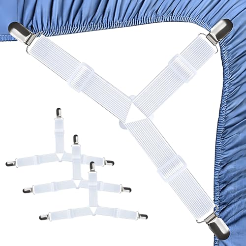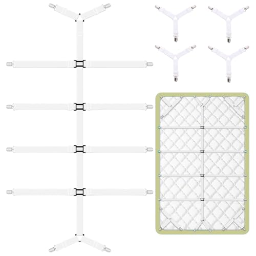 Hanyousheng Attache Drap Housse, 4 Pcs Blanc Tendeur Drap Housse, Élastiques Ajustables Sangle Drap Housse avec Pinces Métalliques, Tendeurs De Drap pour Draps, Matelas, Ou Canapé