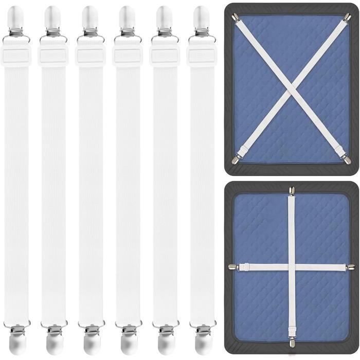 Attache Drap Housse, Tendeur Drap Housse, Sangle Matelas, Elastique Drap Housse, Sangle Drap Housse, Clips à 3 Voies et 6 Côtés, Convient Aux Draps-Housses et Aux Draps, Blanc