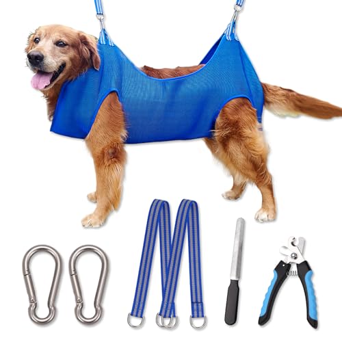 Hamac de toilettage pour chien – Sangle pour le toilettage, hamac de coupe des ongles pour chiens, harnais pour animaux de compagnie avec coupe-ongles, harnais ergonomique pour animaux de compagnie