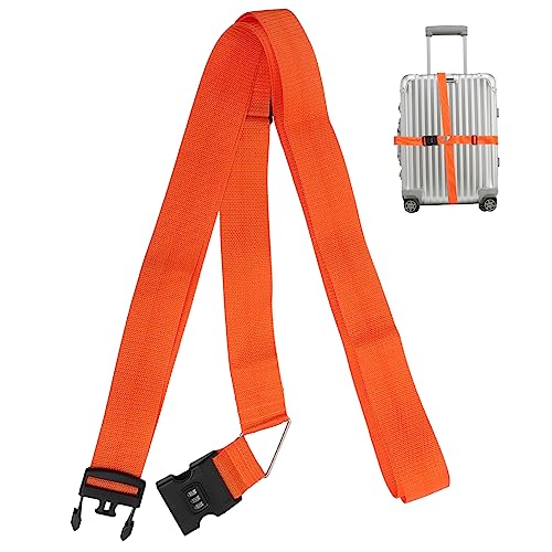 JEWEDECO Sangles De Bagages TSA Serrure à Combinaison Sangle De Valise Réglable en Tissu Oxford Et Acier Inoxydable Ceinture à Bagages Robuste pour Voyageur Fixation Sécurisée Orange