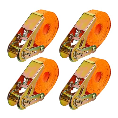 Relaxdays Sangles d'arrimage avec cliquet, 4 pièces, 5 m, 500 kg, sécurité de Chargement Voiture, remorque, Orange
