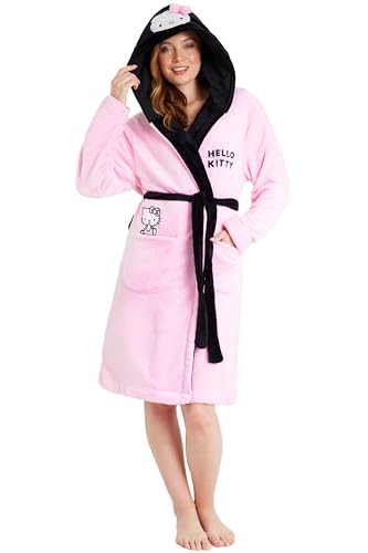 Hello Kitty Sanrio Peignoir Femme et Ado, Peignoir Capuche Polaire Doux avec Ceinture Cinnamoroll Kuromi, Anime Cadeau Femme (2XL, Rose Hello Kitty)