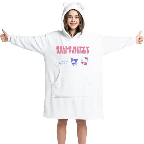 Hello Kitty Sanrio Sweat à Capuche Oversize Fille, Couverture Pull Polaire, Sweat Plaid avec ou sans Fonction Coussin (Blanc Coussin)