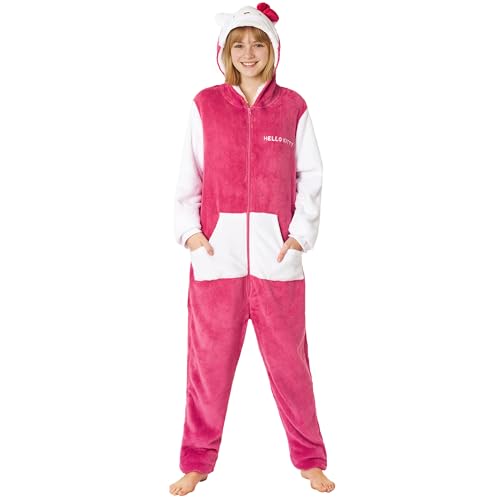 Hello Kitty Sanrio Combinaison Pyjama Fille et Ado, Polaire avec Capuche, Anime Pyjama Kawaii Douillet, Idée Cadeau Fille (11-12 Ans, Rose Hello Kitty)