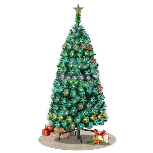 HOMCOM Sapin de Noël Artificiel Lumineux 150H cm Fibre Optique Multicolore + Support Pied 180 Branches étoile Sommet Brillante Vert