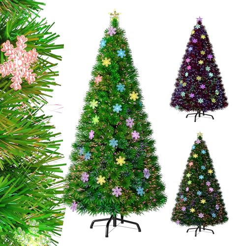 YUENFONG Sapin de Noël Artificiel Lumineux Fibre Optique LED Multicolore 210 cm, Fibre Optique colorée avec Flocons de Neige, Matériau PVC, Décoration de Noël pour Noël, Jardin, magasins (210 cm)