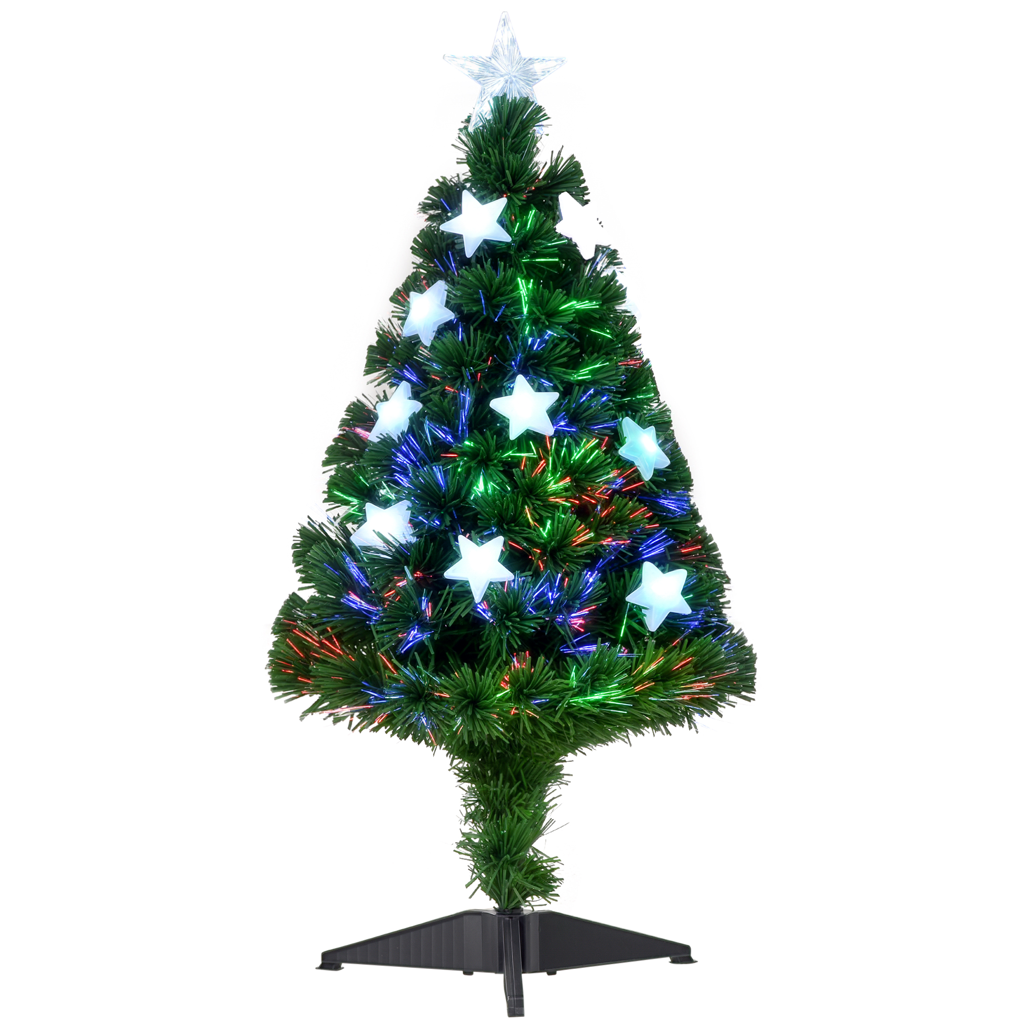 Homcom Sapin de Noël sapin artificiel lumineux fibre optique LED multicolore + support pied Ø 45 x 90H cm 90 branches étoile sommet brillante vert