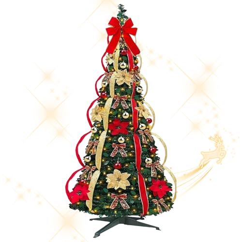 Domigard Sapin de NoëL Artificiel RéAliste, Sapin Lumineux 150 cm avec Boules de NoëL & éclairage & Pointe d'étoile, Décoration NoëL,Rouge
