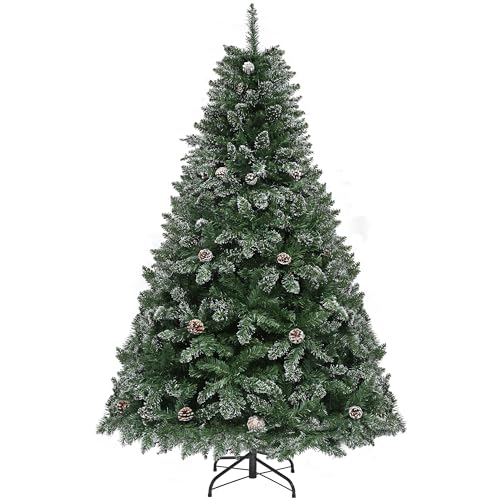 YITAHOME Sapin de Noël Artificiel 182 cm avec Neige et Pommes de pin, Environ 880 Pointes, Sapin réaliste avec Cadre Pliant et Support en métal, Montage Rapide pour Maison et magasins, 182 x Φ105 cm