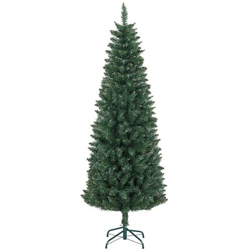 Sapin de Noël artificiel 180 cm slim avec support en acier pliable, 479 branches épines, décoration de Noël effet réaliste, vert