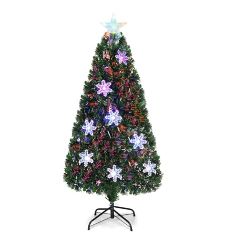 GOPLUS Sapin de Noel Lumineux LED, 120cm Sapin de Noël Artificiel Fibre Optique avec 18 Flocons de Neige Lumières et Etoile Sommet, 125 Branches Touffues, Décoration Noël
