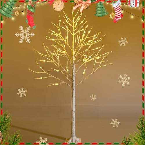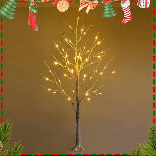 GOPLUS Sapin de Noel Lumineux 120 CM, Sapin de Noel Blanc à 48 Lumières LED avec Branches Mortes, Bouleau Noël Lumineux Arbre de Noël Artificiel