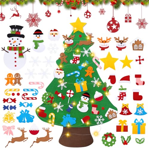 Feutre Arbre de Noël, Sapin de Noel DIY Sapin de Noël À Faire Artificiel en Feutre Sapin de Noel Lumineux LED Et 40 Amovibles Decoration Noel Cadeau Noel pour Enfant Décoration Murale Maison Porte