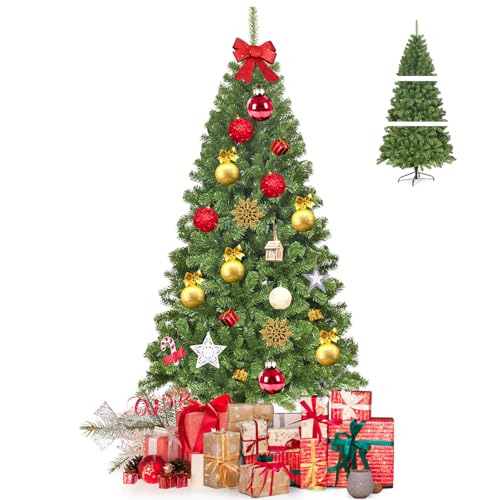 GOPLUS Sapin de Noel Artificiel 180cm, Sapin de Noël Réaliste Touffu en Forme d'Épicéa avec 928 Branches, Montage Simple, pour Décoration Maison, Entreprise, Magasin