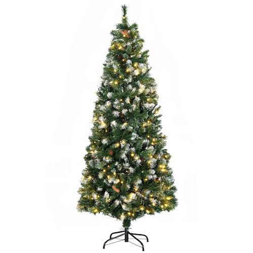 HOMCOM Sapin de Noël artificiel 180 cm arbre de Noël lumineux floqué enneigé avec support en acier pliable, 200 LEDs blanc chaud, 793 branches, décoration de Noël effet réaliste - vert