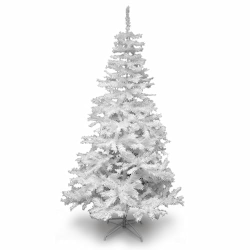 CASARIA® Sapin de Noël Artificiel 180 cm Blanc Pied métal 705 Branches PVC décoration de noël Montage Rapide fêtes Arbre réaliste réutilisable