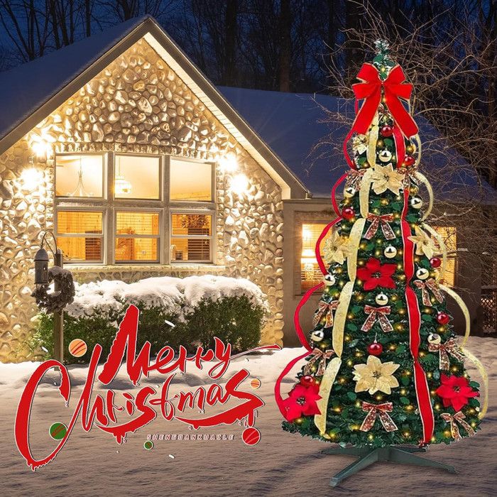 Sapin de Noel Pliable,Artificiel Lumineux Arbre Noel,Sapin Noel Pop Up Slim Sapin, Apparence Réaliste avec Branches Denses, Stable avec Base Métallique, pour Intérieur Extérieur Maison Magasin (1.5m)