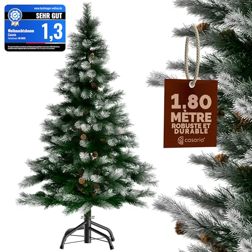 CASARIA® Sapin de Noël Artificiel 180 cm Neige Artificielle Pied 810 Branches Pommes de pins PVC décoration noël Artificiel réaliste réutilisable
