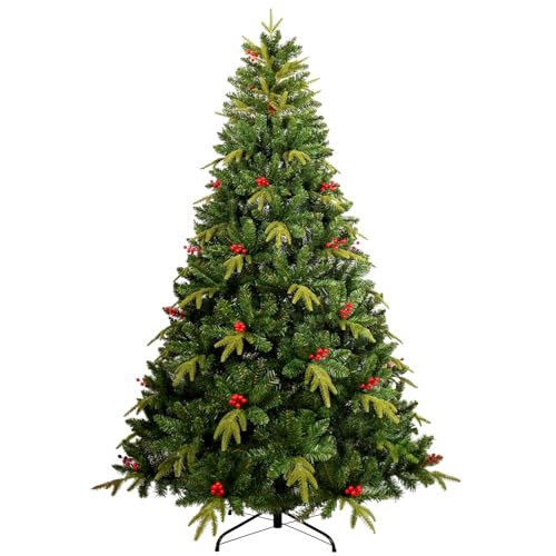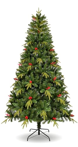 Uten Sapin de Noël Artificiel 180 cm, Réaliste PE Arbr Noël Intérieur Décoration, 950 Aspect Naturel Branches en PVC & PE, 31 Groupes Baies Rouges, Branches Charnière, Base Métal, Réutilisable