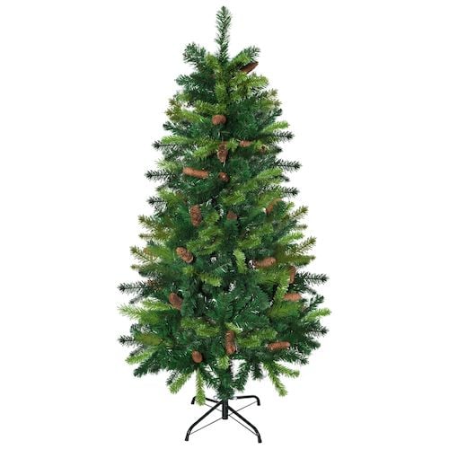 Sapin de Noël artificiel aspect réaliste Ø 60 x 150H cm 24 pommes de pin 360 branches imitation Nordmann