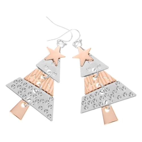 ifundom Boucles D’oreilles Longues Pendantes en Alliage K Kc Couleur Blanc et Or Kc, Boucles D’oreilles de Noël de Sapin pour Femme, Bijoux Festifs Élégants pour Fêtes et Présents