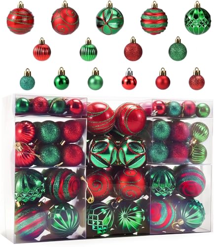 MTKN Lot de 49 Boules de décoration 3 cm Blanc et Or avec Crochet pour Sapin de Noël et décoration Festive (100, Red and Green, Moyen)