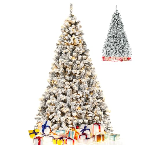 GOPLUS Sapin Noel Artificiel 180cm Lumineux, Sapin Noel Enneigé avec 250 Lumières LED Blanc, 600 Branches en PVC, Support en Fer, Montage Facile, Decoration pour Noël