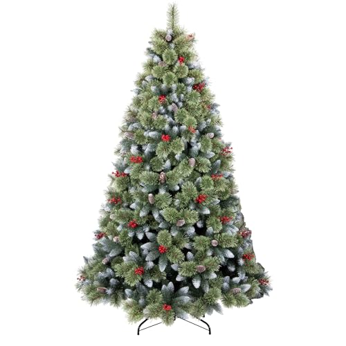 Frankystar Cortina Sapin de Noël enneigé en PVC et PP avec pines et baies Ø121 x 210H 1348 pointes