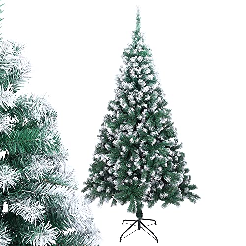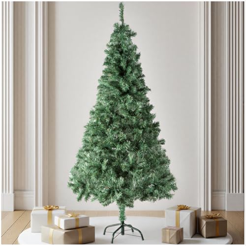 LEADZM Sapin de Noël Artificiel de 180 cm, Arbre de Noel avec 650 Pointes de Branche, PVC Ignifuge, Support métallique - Montage Rapide pour la Maison, Les magasins (Vert & Blanc)