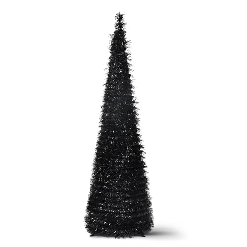 Sapin de Noël Pop-up de 1,5 m – Sapin de Noël Artificiel Pliable en guirlandes – Sapin de Noël Fin pour intérieur, Maison, Appartement, Porche, décorations de fête de Vacances (Noir)