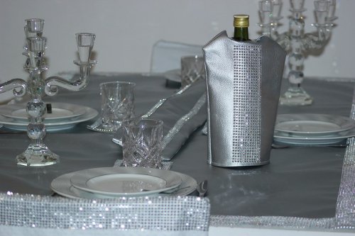 Pour Sasha by Nath Déco 272334-18 Rond de Serviette Set de 6 Pièces Simili Cuir/PVC/Polyester/Polyuréthanne Argent 10 x 15 x 10 cm