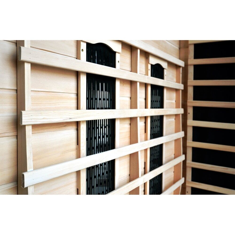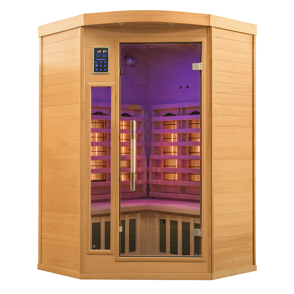 Sauna infrarouge Apollon quartz 2 places angulaire épicéa radio technologie infrarouge - panneau carbone au sol - bois massif épicéa canadien - chro