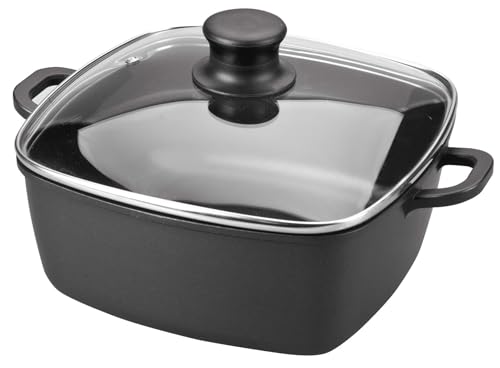 Casserole carrée en fonte d'aluminium de 28 cm avec couvercle en verre, idéale pour mijoter et sauter. Conçu pour une utilisation quotidienne en cuisine.