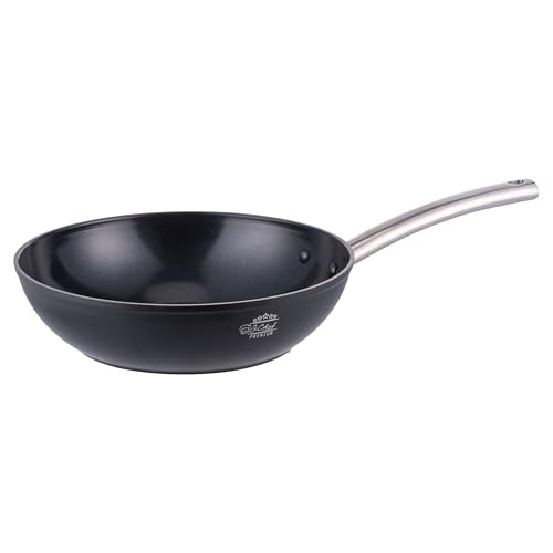 Wok/Sauteuse à pâte 28 cm en aluminium forgé, revêtement antiadhésif en céramique, fond full induction, OuiChef Premium
