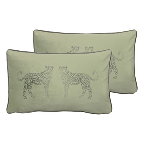 Evans Lichfield Savanna Leopards Coussins remplis de Plumes (Pack Jumeaux), Polyester, Green, 30 x 50cm