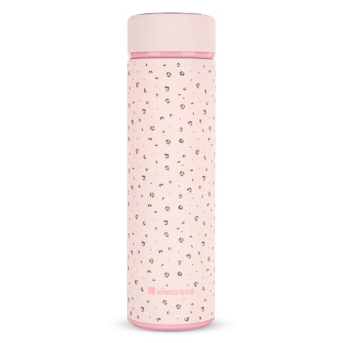 KikkaBoo SAVANNA Thermos Bébé, Inox Double Paroi, Boisson Chaude/Froide 12h-24h, 500ml, Étanche, Infuseur à Thé, Rose