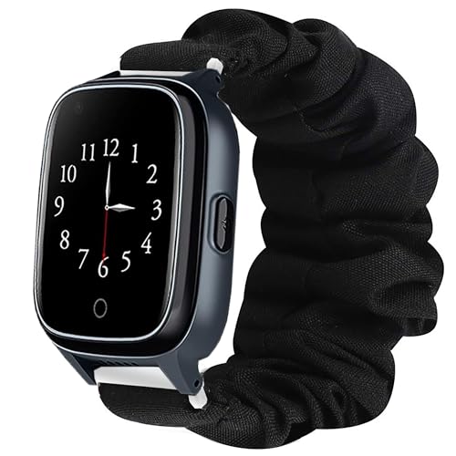 Lamshaw Chouchou Bracelet Compatible avec SaveFamily SmartWatch,en Tissu Imprimé Élastique Bracelet de Montre du Compatible avec SaveFamily Senior/Slim 4G/Iconic Plus 2 (Noir)
