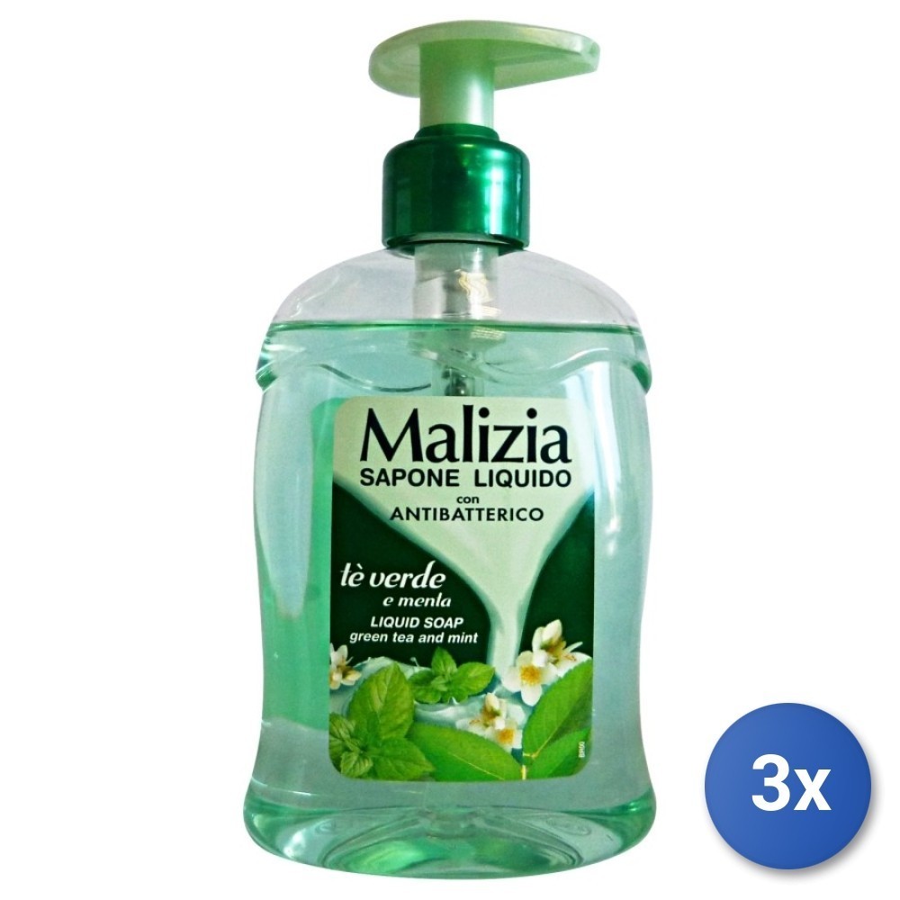 3X Malizia 300 ML Savon Liquide 1 Pz Antibactérien Au Thé Vert