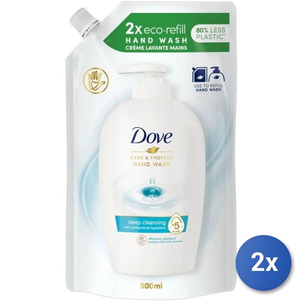 2x Dove Savon Sac 500 Ml. Care&Protect