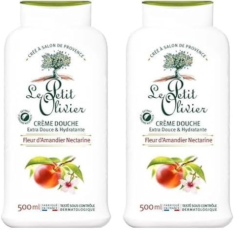 LE PETIT OLIVIER - Crème Douche Extra Douce & Hydratante - Fleur d'Amandier Nectarine - PH Neutre Pour La Peau - Sans Savon, Sans Colorant - Fabriqué En France - 500 ml (Lot de 2)