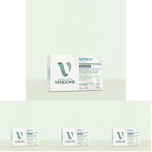 LABORATOIRES VENDÔME - NUTRI V+ - Pain Dermatologique Sans Parfum - Corps & Visage - Nettoie En Douceur & Nourrit - pH Neutre & Sans Savon - Haute Tolérance - Peaux Sèches À Très Sèches - 100g